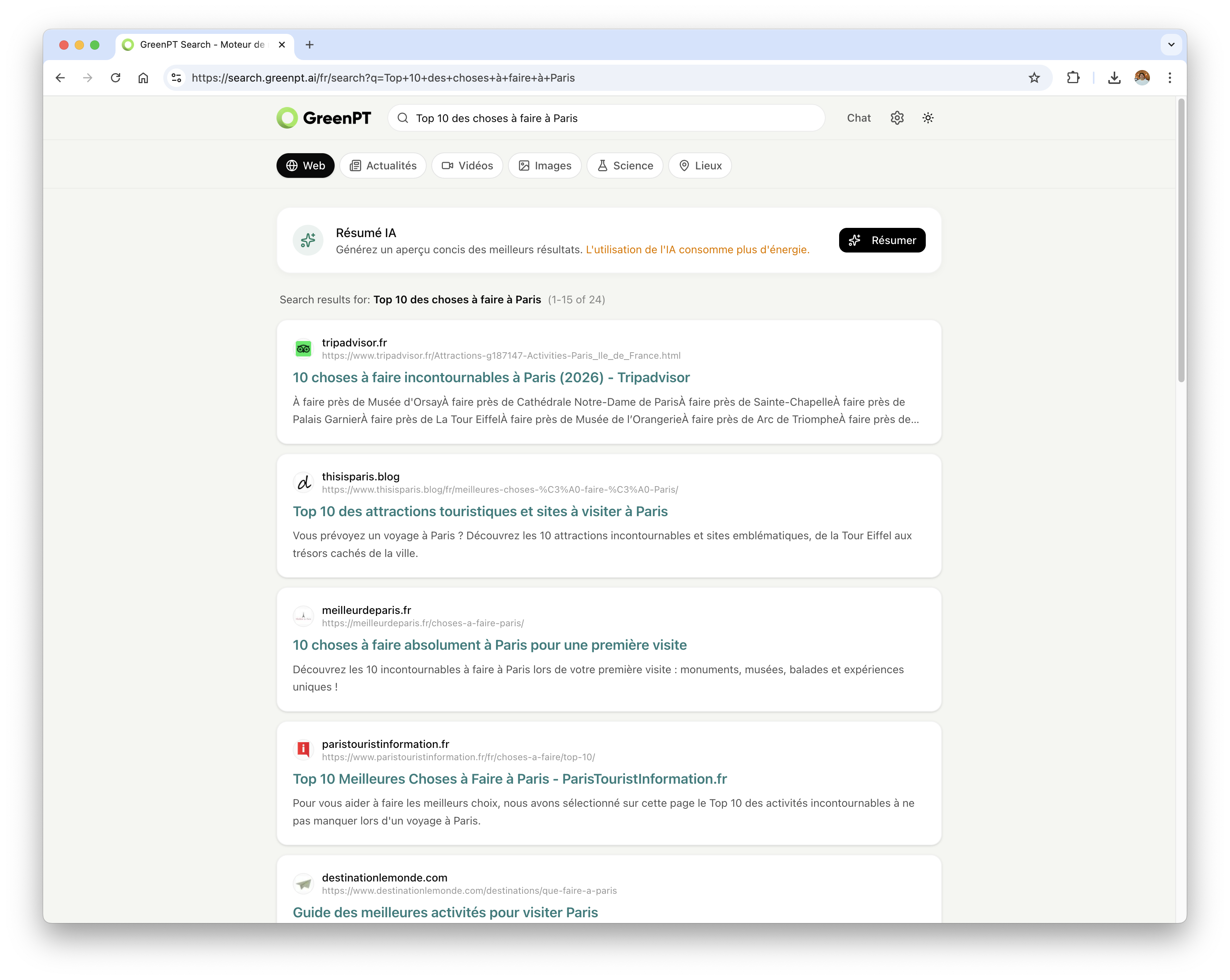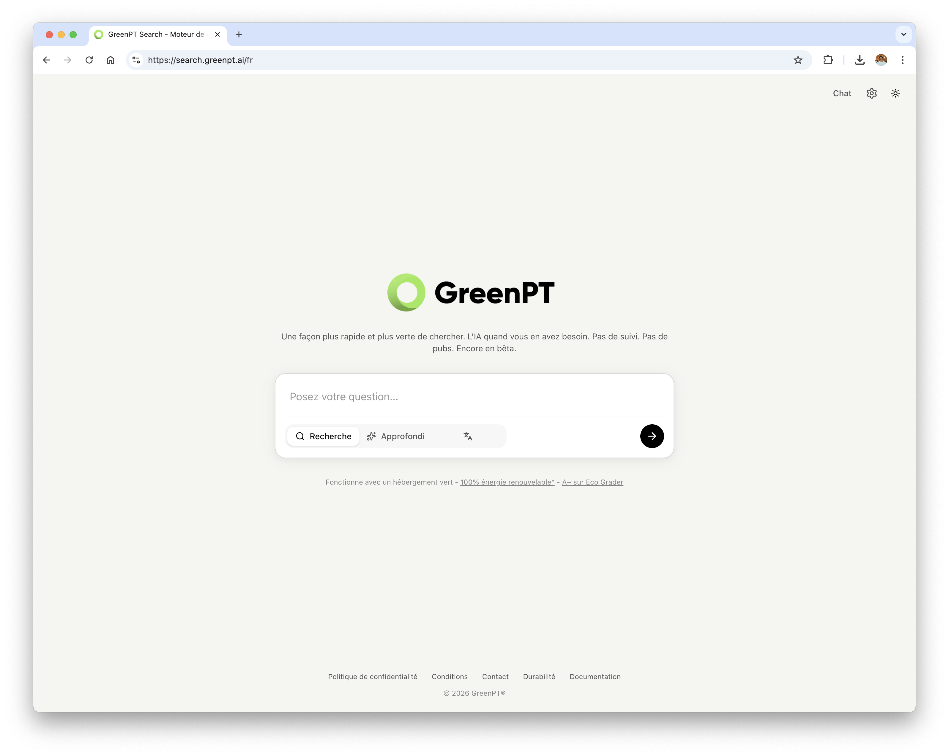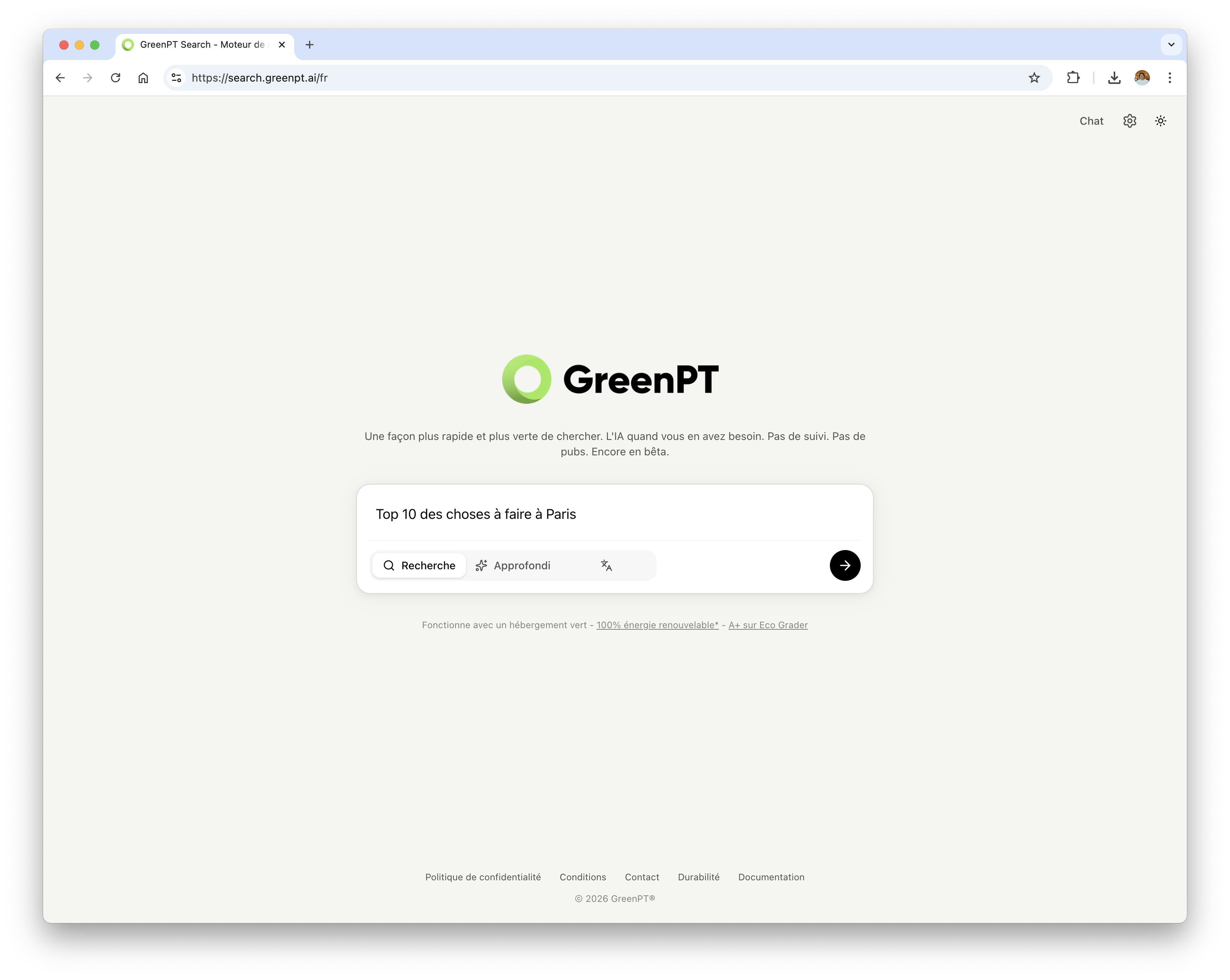 Le nouveau moteur de recherche est accessible gratuitement et utilisable directement sur search.greenpt.ai/fr.